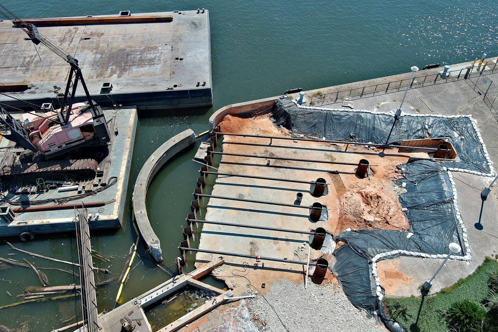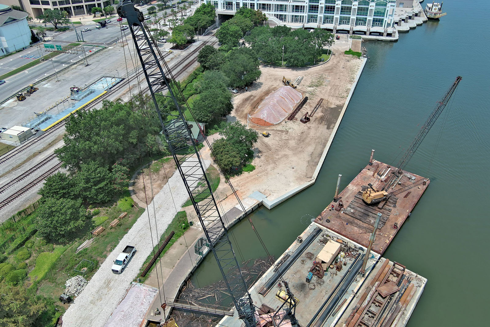 The new bulkhead structures are designed with modern engineering to better withstand tropical storms, hurricanes, and wave action from port activities, providing enhanced protection for both the park and downtown Mobile.