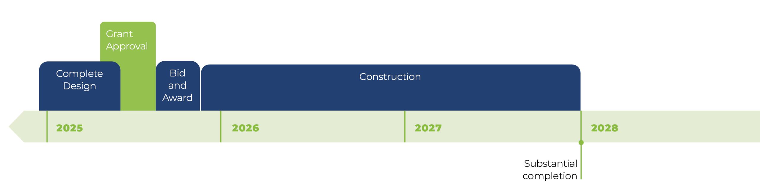 The full construction is expected to take approximately 2.5 years, with completion targeted for the first quarter of 2028. Construction will begin at Broad Street and progress toward Water Street, moving sequentially block by block to minimize disruption.