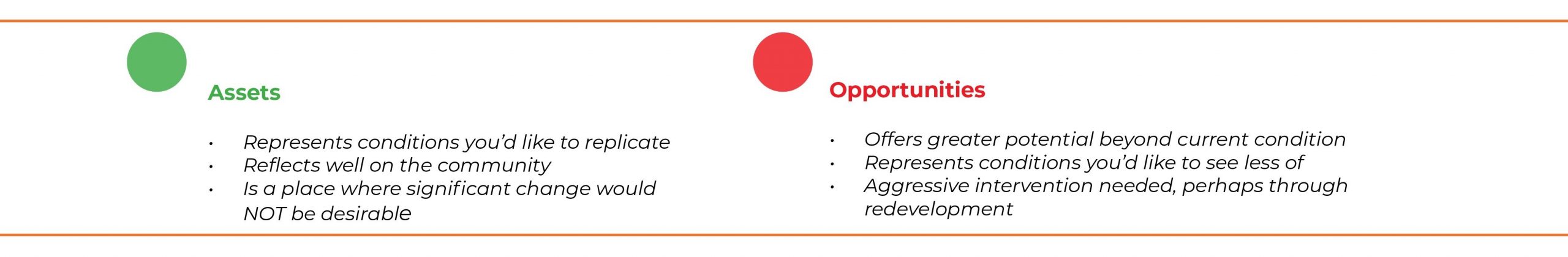 Assets represent conditions you'd like to replicate in the community. Number each asset and give a location.